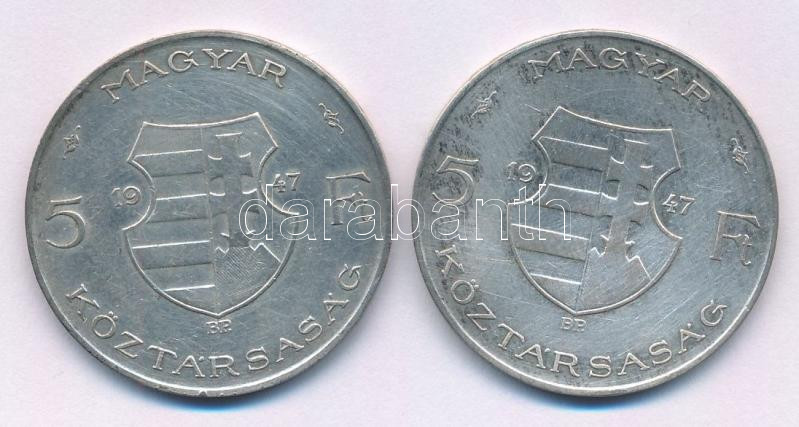 Leírás: 1947. 5Ft Ag "Kossuth" (2x) T:F patina, ph.
