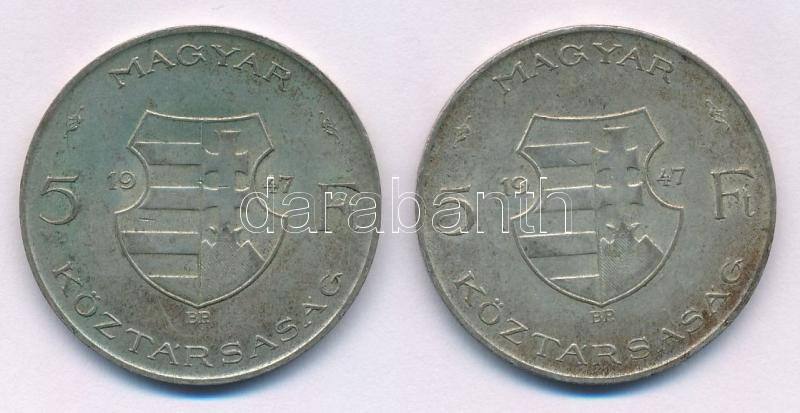 Leírás: 1947. 5Ft Ag "Kossuth" (2x) T:F patina