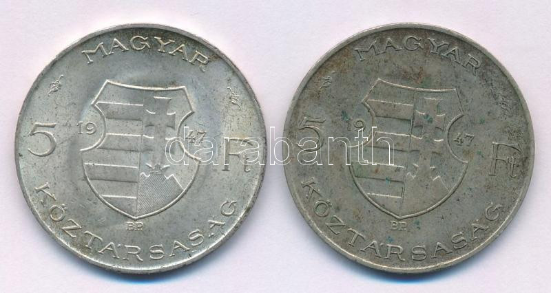Leírás: 1947. 5Ft Ag "Kossuth" (2x) T:F patina