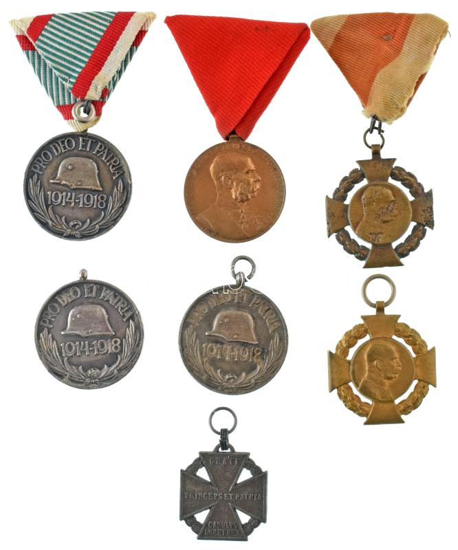 1898. "Jubileumi Emlékérem Fegyveres Erő Számára / Signum memoriae (AVSTR)" bronz kitüntetés eredeti mellszalagon + 1908. "Katonai Jubileumi Kereszt" aranyozott bronz kitüntetés (2x: mellszalagon + mellszalag nélkül) + 1916. "Károly-csapatkereszt" Zn kitüntetés mellszalag nélkül + 1929. "Magyar Háborús Emlékérem" ezüstözött bronz kitüntetés (3x: mellszalagon 1x + mellszalag nélkül 2x) T:AU-VF, közte egy F