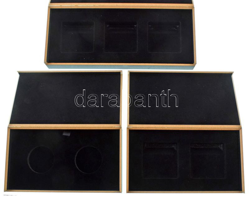 3db pozdorja tok belső szivacsos-plüssös anyagborítással, az egyik 2 férőhellyel (49x49mm, külső méret 160x90x30mm), a másik 2 férőhellyel (38mm, külső méret 160x90x30mm), a harmadik 3 férőhellyel (49x49mm, külső méret 220x90x30mm), újszerű állapotban