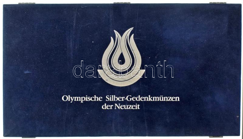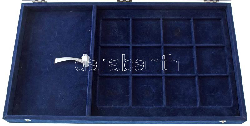 "Olympische Silber-Gedenkmünzen der Neuzeit" éremsor dísztokja, egy beépített tálcával, benne 12db 55x55mm-es és 1db 130x215mm-es férőhellyel. Használt de újszerű állapotban.