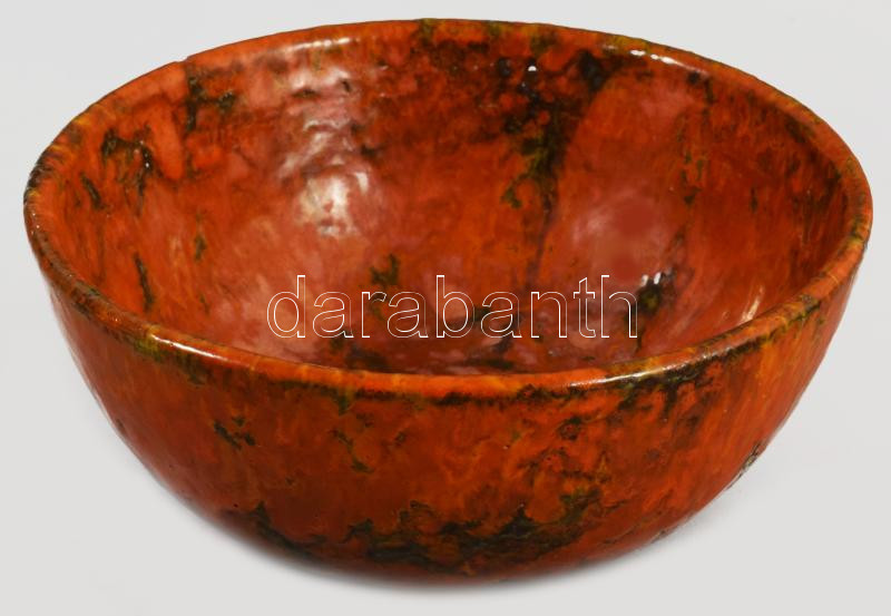 Leírás: B jelzéssel iparművész tál, mázhibával, d: 14 cm