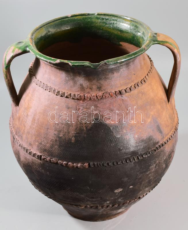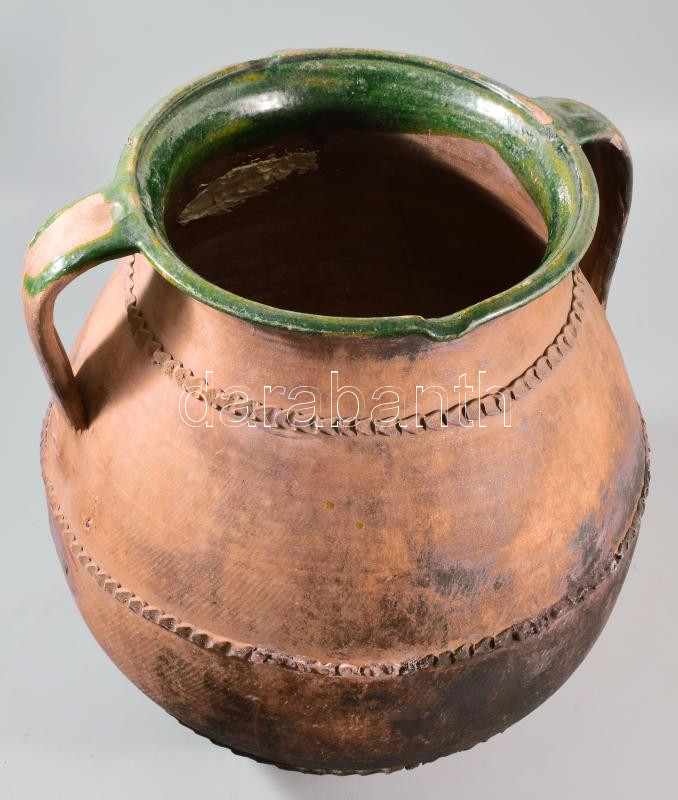 Fazék. Gömör, cca 19. sz. vége, javított, sérüléssel, m: 34 cm /// KIZÁRÓLAG SZEMÉLYES ÁTVÉTEL, NEM POSTÁZZUK! / ONLY PERSONAL COLLECTION AT OUR OFFICE