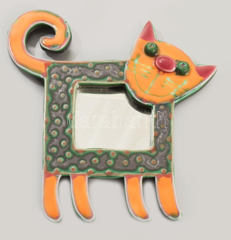 Görbebögre macska figurás kerámia tükör, jelzett, 18x16 cm https://www.darabanth.com/hu/508-Gyorsarveres/508.0/Porcelan-keramia-uveg/Keramiak~856/Gorbebogre-macska-figuras-keramia-tukor-jelzett-18x16-cm~II3435629
