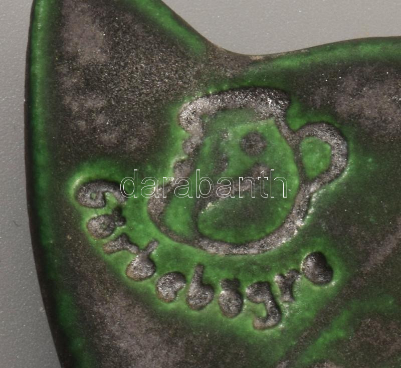 Leírás: Görbebögre macska figurás kerámia tükör, jelzett, 18x16 cm
