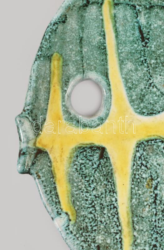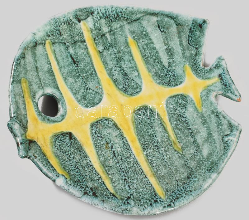 Leírás: Iparművész hal alakú tál, jelzés nélkül, mázhibával, 18x18 cm