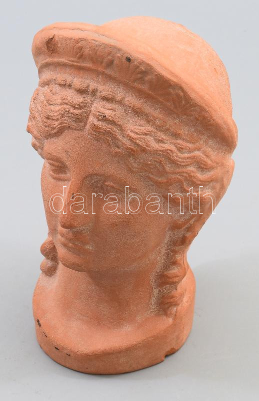 Leírás: Női fej kerámia asztaldísz, sérüléssel, m: 17,5 cm