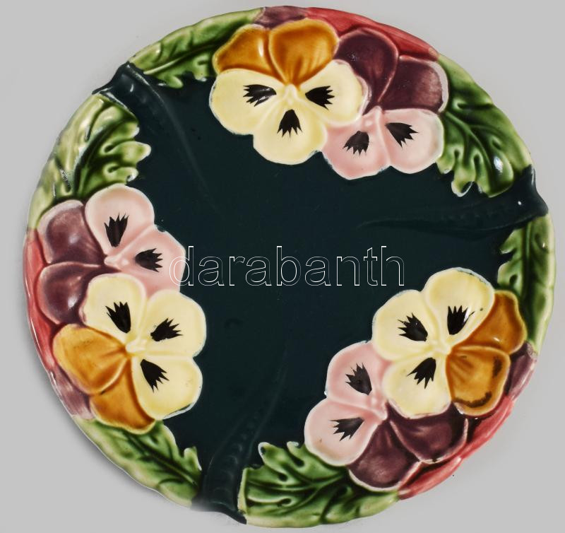 Szecessziós dísztál, felületi sérüléssel, d: 17 cm
