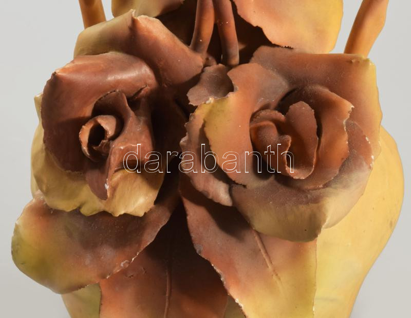 Leírás: Teplitz kerámia váza, plasztikus virág dísszel, jelzett, kézzel festett, apró lepatanásokkal m:23 cm
