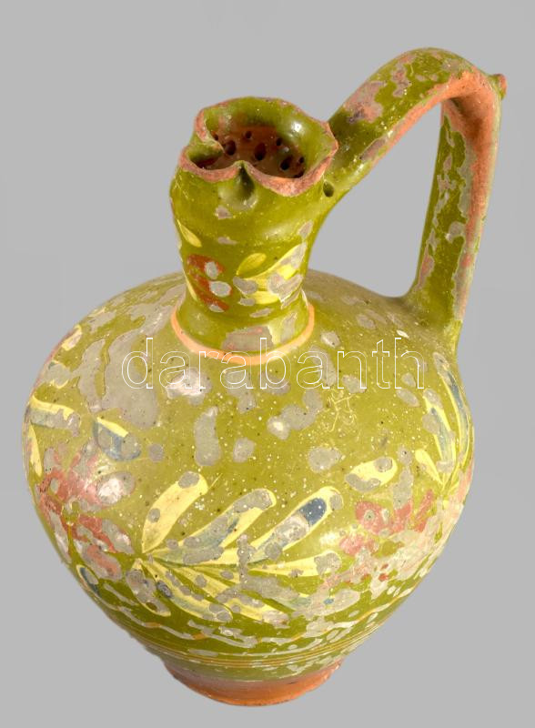 Leírás: Vizes kancsó. Mázas cserép, Alföld, XIX. sz. Sérülésekkel 31 cm