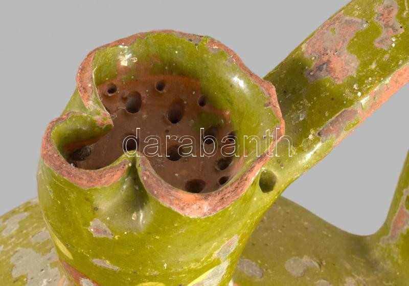 Vizes kancsó. Mázas cserép, Alföld, XIX. sz. Sérülésekkel 31 cm https://www.darabanth.com/hu/508-Gyorsarveres/508.0/Porcelan-keramia-uveg/Keramiak~856/Vizes-kancso-Mazas-cserep-Alfold-XIX-sz-Serulesekkel-31-cm~II3435846