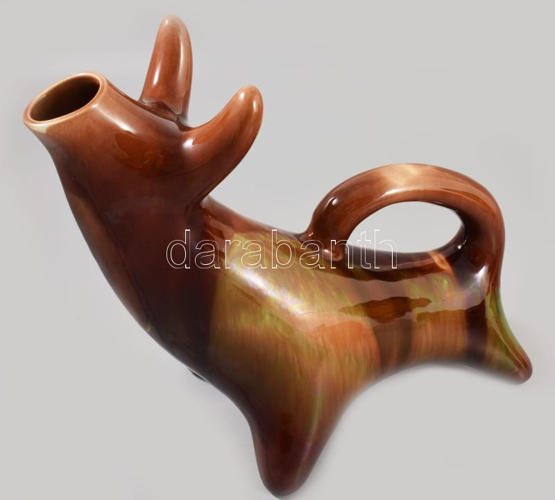 Leírás: Yaszilkiv mázas kerámia, bika formájú majolika kiöntő, jelzett, hibátlan d25x26 cm