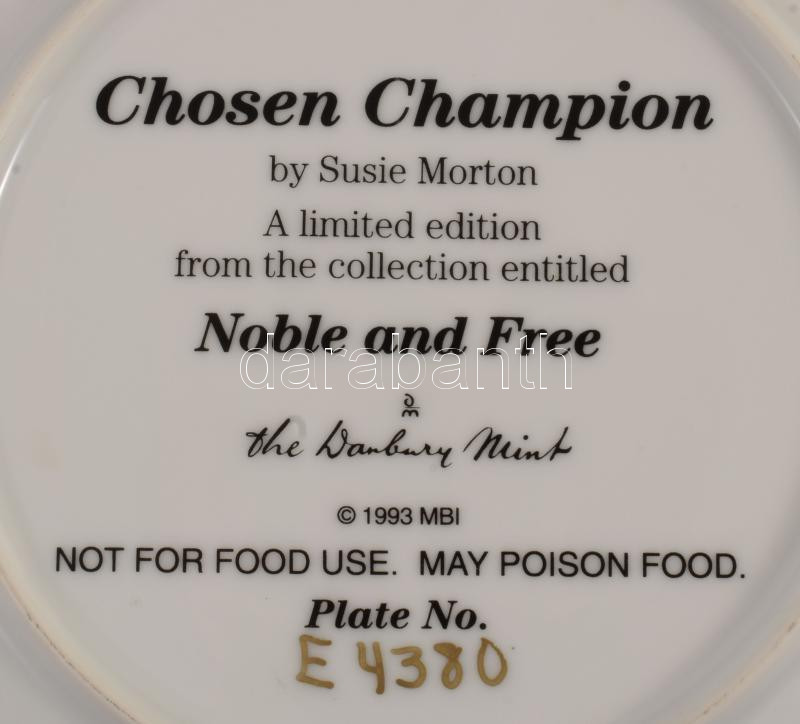 Leírás: 1993 Lómintás limitált számú fali dísztányér, jelzett, hibátlan, d: 20,5 cm