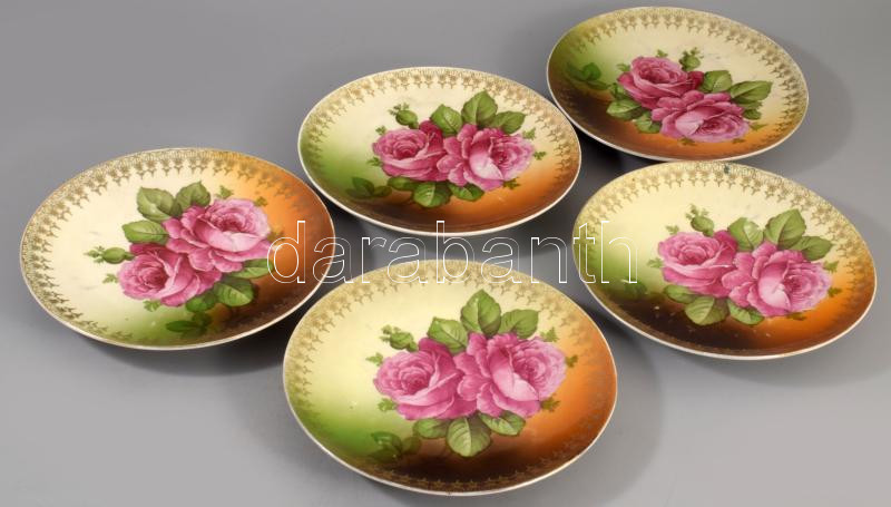 Leírás: 5 darabos rózsamintás tál szett, kopással, d: 18 cm
