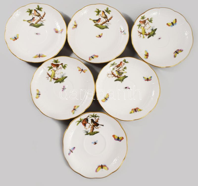 Leírás: Herendi Rothschild mintás 6 darab kávés csésze alátéttel. Jelzett, minimális karcokkal, d: 14 cm