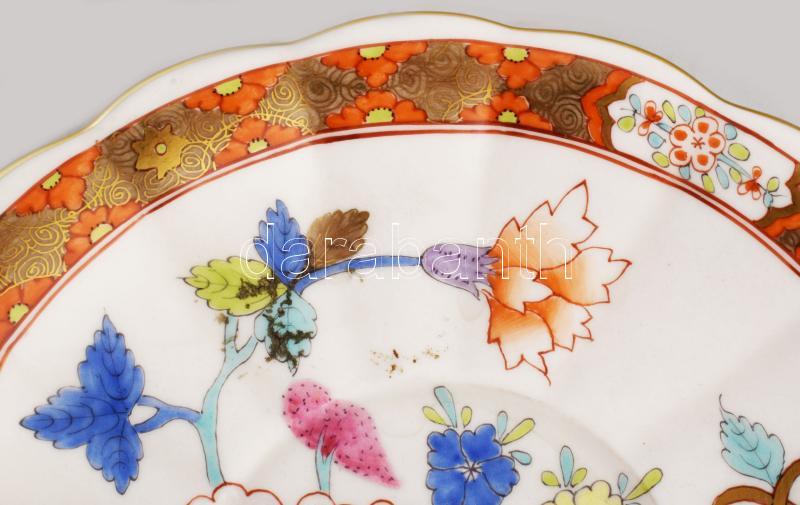 Leírás: Herendi Shanghai mintás talpas kínáló plasztikus aranyhal figurákkal. Jelzett, hibátlan, d: 14,5 cm, m: 10 cm
