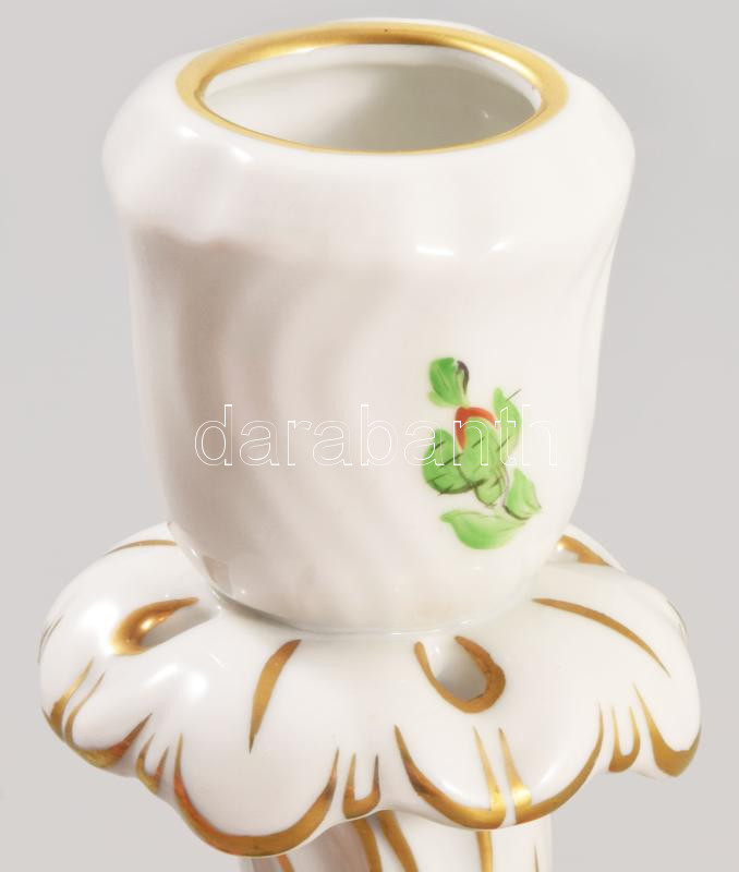 Leírás: Herendi gyertyatartó, plasztikus rózsa díszítésekkel. Jelzett, hibátlan, m: 13 cm