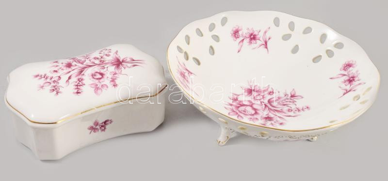 Leírás: Hollóházi kínáló tál és bonbonniere. Kézzel festett, jelzett, hibátlan d: 20 cm 10x16 cm
