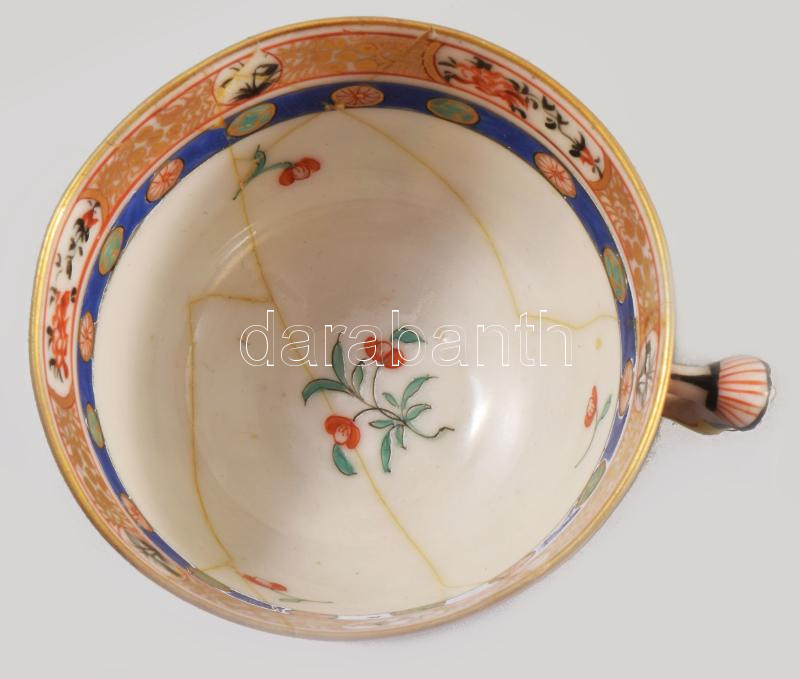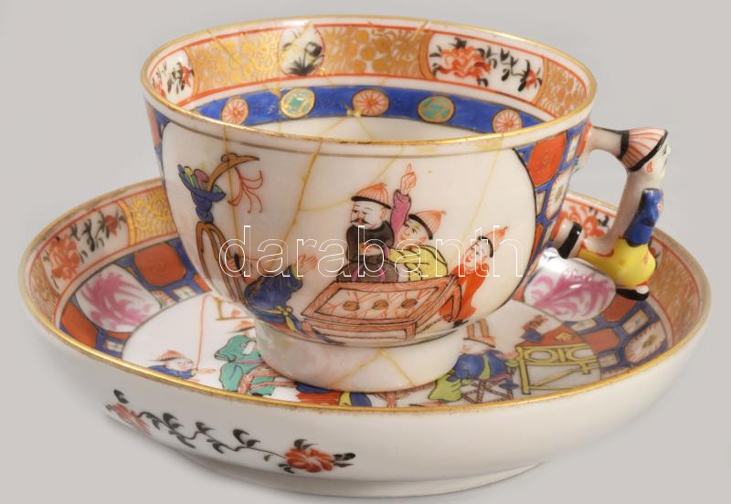 Leírás: cca 1900-1905 Herendi Óherendi Ming mintás mokkás csésze és alj. Kézzel festett, jelzett, a csésze ragasztott. a tányér hibátlan, d: 10 cm