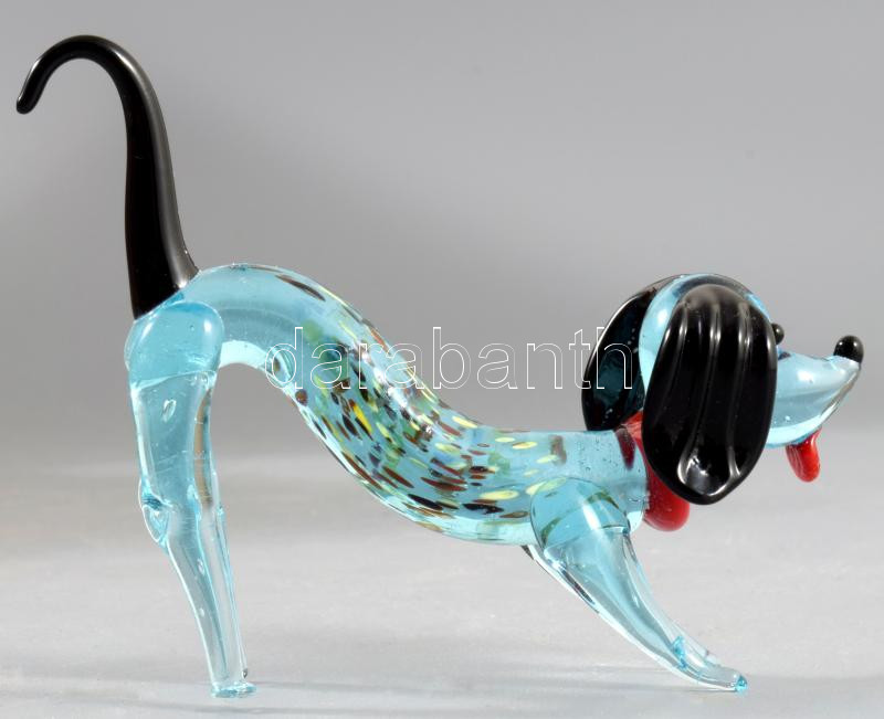 Leírás: Iparművész üveg kutya figura, hibátlan, 10x7,5 cm