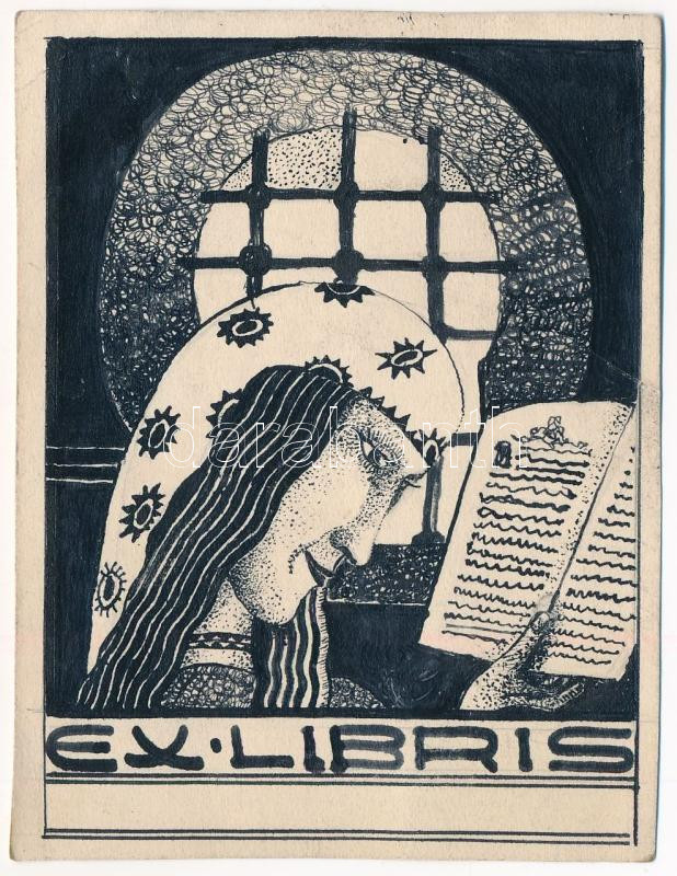Leírás: Ex libris terv. Tus, papír, jelzés nélkül. 10,5x8 cm