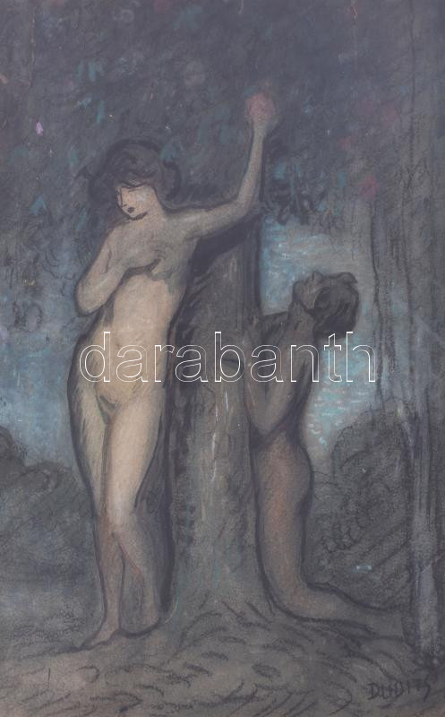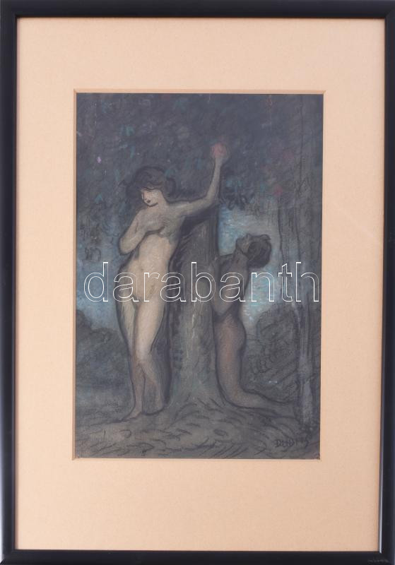 Leírás: Dudits jelzéssel: Ádám és Éva. Pasztell, papír. Szakadásokkal. Üvegezett fakeretben. 33x23 cm