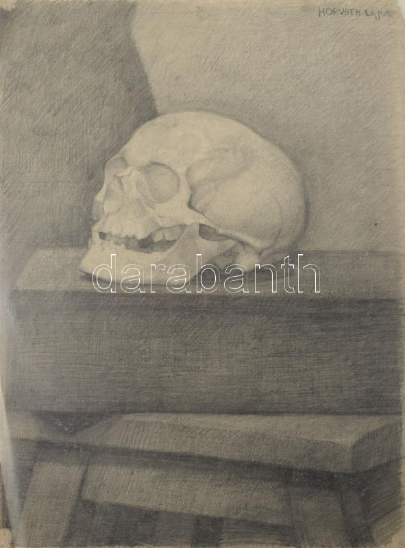 Horváth Lajos jelzéssel: Koponya. Ceruza, papír. 50×35,5 cm https://www.darabanth.com/hu/509-Gyorsarveres/509.0/Festmenyek-es-grafikak/Festmenyek-es-grafikak-jelzessel-jelzes-nelkul~1/Horvath-Lajos-jelzessel-Koponya-Ceruza-papir-50C39735-5-cm~II3445247