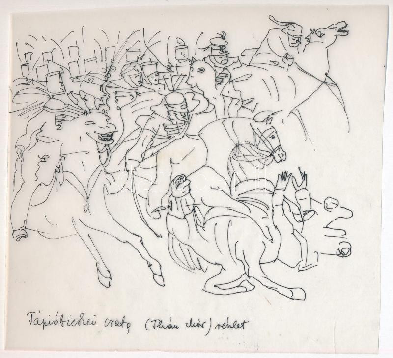 Leírás: Jelzés nélkül, Than Mór után: Tápióbicskei csata (1848-49-es forradalom és szabadságharc). Tus, toll, hártyapapír, 16×17 cm