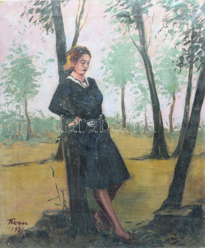 Leírás: Kern jelzéssel: Merengő. Olaj, vászon. Sérült. 60x50 cm