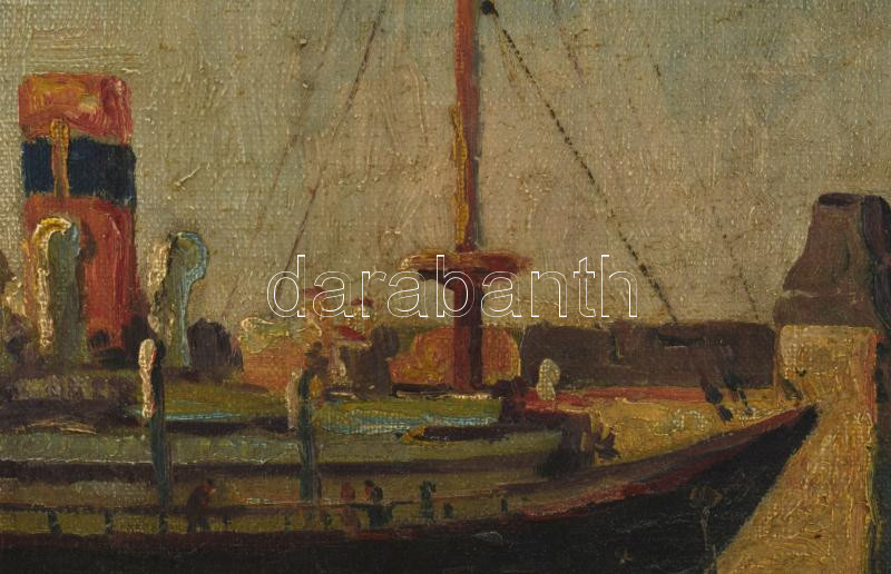 Leírás: Vincze jelzéssel? Kikötő. Olaj, vászon. Dekoratív fakeretben. 30x40 cm