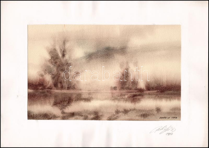 Balázs György (1927-2015): Vízparti táj, 1997. Akvarell, papír, jelzet... https://www.darabanth.com/hu/509-Gyorsarveres/509.0/Festmenyek-es-grafikak/Festmenyek-es-grafikak~4/Balazs-Gyorgy-1927-2015-Vizparti-taj-1997-Akvarell-papir-jelzett-paszpartuban-19-5x31-~II3411933
