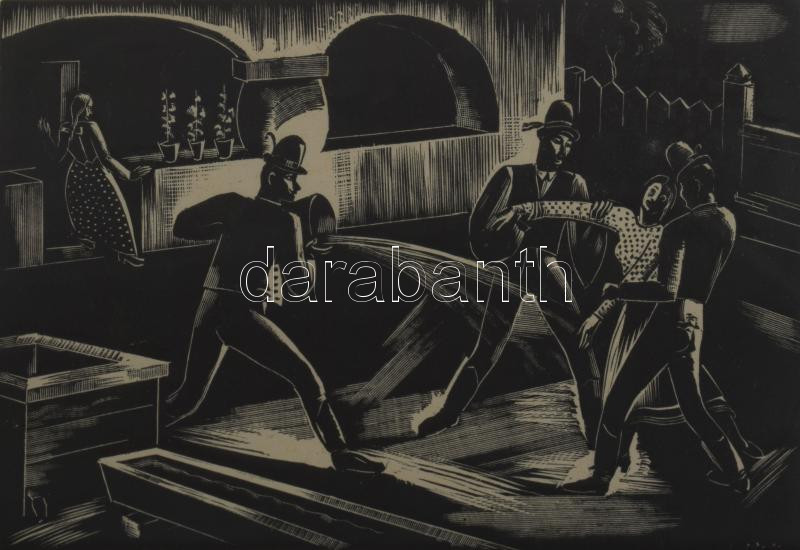 Gáborjáni Szabó Kálmán (1897-1955): Húsvéti locsolás, 1935. Fametszet,... https://www.darabanth.com/hu/509-Gyorsarveres/509.0/Festmenyek-es-grafikak/Festmenyek-es-grafikak~4/Gaborjani-Szabo-Kalman-1897-1955-Husveti-locsolas-1935-Fametszet-papir-jelzett-Lap-~II3446334
