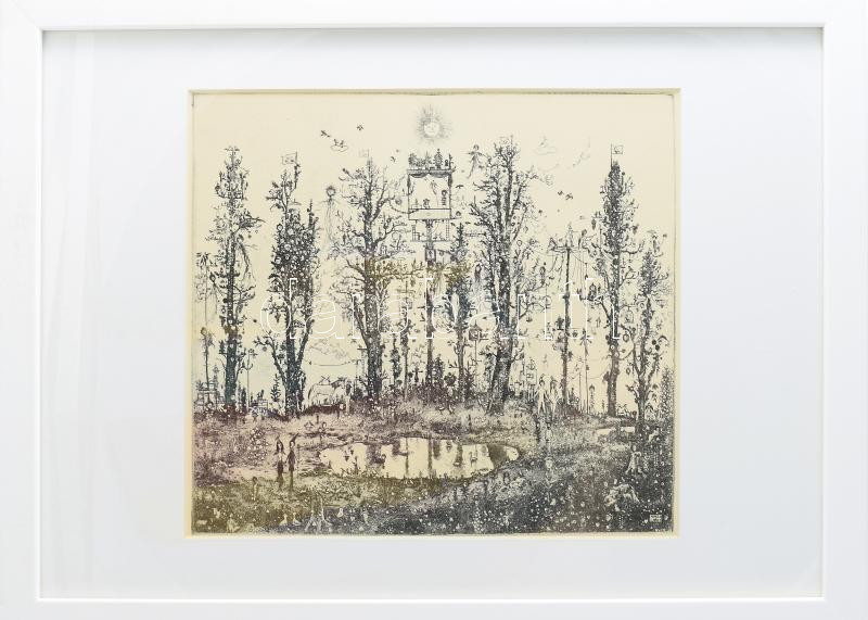 Gross Arnold (1929-2015): Az öröm ünnepe I. Ofszet nyomat, papír, jelzett a nyomaton. Az 1973-ban megjelent Corvina mappából. 25x28 cm. Üvegezett fakeretben.