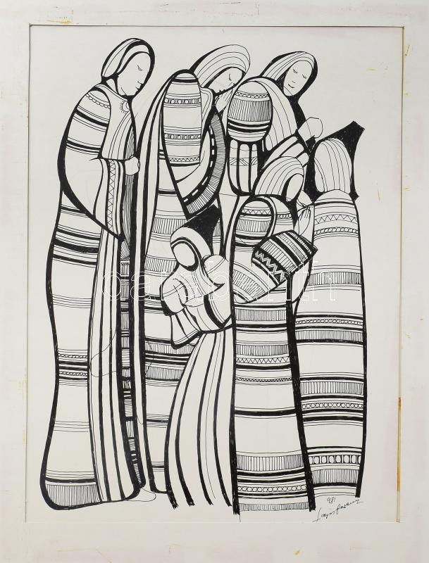 Leírás: Lajos Ferenc (1912-1998): Csoport, 1981. Tus, papír, jelezve jobbra lent, 37×27,5 cm