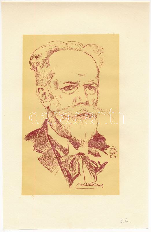Leírás: Makoldy József (1890-1957): Nádler Róbert festőművész portréja, 1926. Litográfia, papír, jelzett a metszeten. 20x12 cm