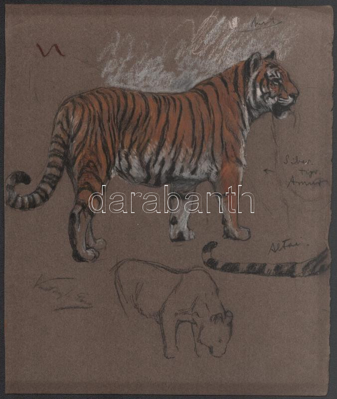 Vastagh Géza (1866-1919): Szibériai tigris. Szén, pasztell, papír. Jelezve balra lent. Proveniencia: Vastagh Géza hagyatéka. 31x26 cm / Géza Vastagh (1866-1919): Tiger. Charcoal and pastell on paper, signed lower right. Provenance: Estate of Géza Vastagh.