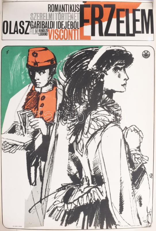 Leírás: Gunda Antal (1929-): Érzelem, 1966. Rendező: Luchino Visconti. Filmplakát, ofszet, papír. Offset Nyomda. Feltekerve. Lapszéli apró gyűrődésekkel. 57x39 cm