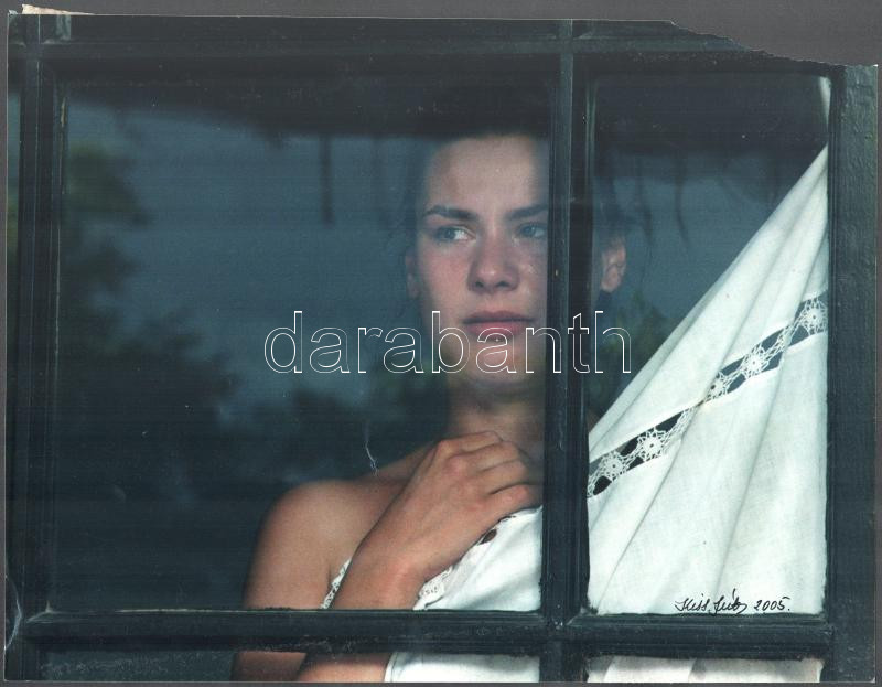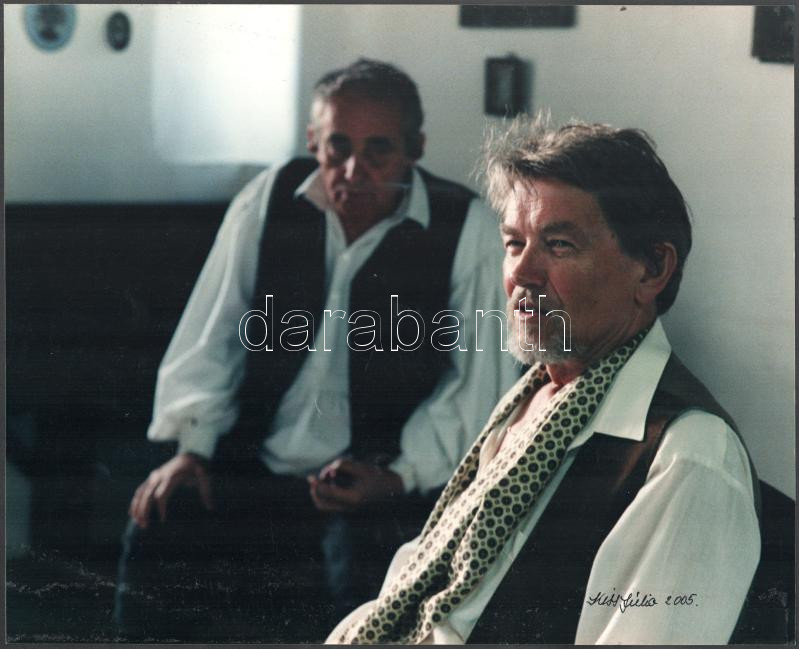 2005 Kiss Júlia: Az Ebéd c. film jelenetei (Kozák András, Hollósi Frigyes), 2 db nagyméretű fotó, Kiss Júlia Balázs Béla-díjas fotográfus jelzett felvételei, az egyiken sarokhiánnyal, 27x34,5 cm körül