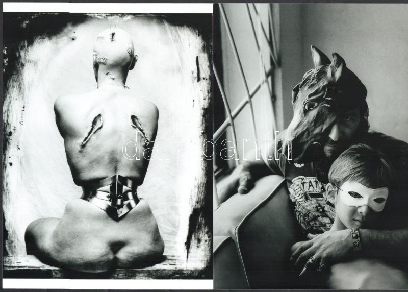 Joel Peter Witkin (1939) amerikai fotóművész felvételei, 2 db modern nagyítás, jelzés nélkül, a néhai Népművelési Intézet fotóművészeti referensének gyűjteményéből, "A fotóművészet egyetemes története" című előadásának anyagából, jelzés nélkül, 21x15 cm