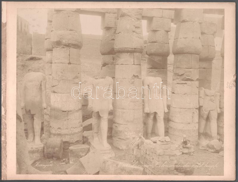 cca 1870-1890 Egyiptom, a Zangaki testvérek (Adelphoi Zangaki) a luxori kis templom oszlopsora előtt, nagyméretű fotó kartonon, Hippolyte Arnoux felvétele (jelezve jobbra lent), a karton szélén kisebb sérüléssel, 23x28 cm, karton: 24,5x32 cm