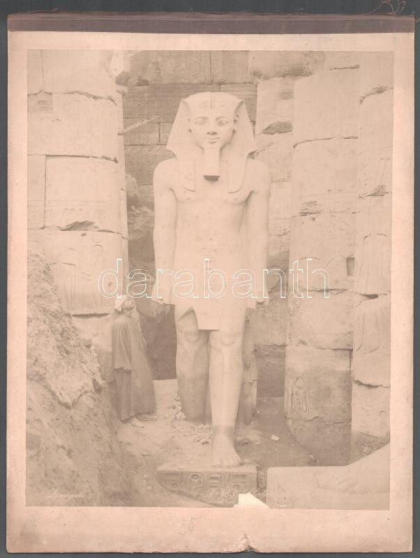 cca 1870-1890 Egyiptom, a luxori templom egyik szobra, a Zangaki testvérek (Adelphoi Zangaki) felvétele, nagyméretű fotó kartonon, kissé sérült, foltos, 27,5x22 cm, karton: 32x24,5 cm