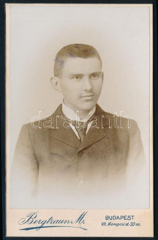 cca 1900 Férfiportré, keményhátú fotó Bergtraun M. budapesti műtermébő... https://www.darabanth.com/hu/510-Gyorsarveres/510.0/Fotomuveszet/Foto~807/cca-1900-Ferfiportre-kemenyhatu-foto-Bergtraun-M-budapesti-mutermebol-10-5C3976-5-cm~II3452704