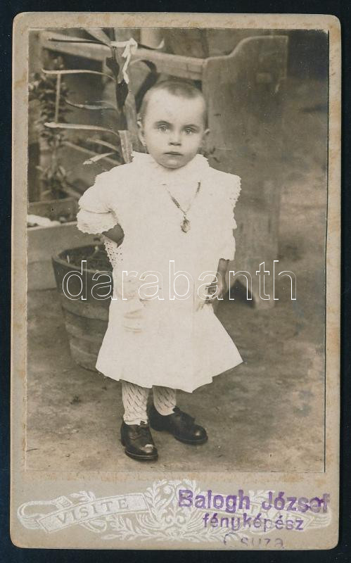 Leírás: cca 1910 Kisgyerek portréja, keményhátú fotó Balogh József csuzai műterméből, 10,5×6,5 cm