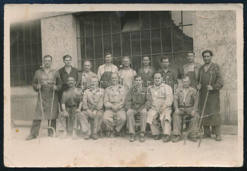 cca 1930 Gyári / öntödei munkások csoportképe, fotó, jelzés nélkül, 8x... https://www.darabanth.com/hu/510-Gyorsarveres/510.0/Fotomuveszet/Foto~807/cca-1930-Gyari-ontodei-munkasok-csoportkepe-foto-jelzes-nelkul-8x11-5-cm~II3447692