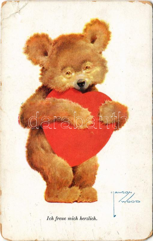Leírás: Ich freue mich herzlich / Bear with heart. Wohlgemuth & Lissner No. 2533. s: Lawson Wood (EB)