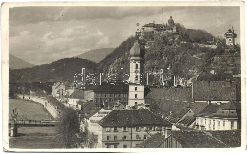 Leírás: Graz, Mur-Schlossberg, Buchdrucker / castle, press (EK)