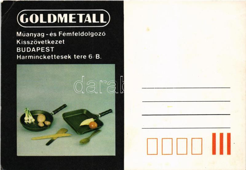 Goldmetall Műanyag- és Fémfeldolgozó Kisszövetkezet reklámja, Kesjár C... https://www.darabanth.com/hu/510-Gyorsarveres/510.0/Kepeslapok/Auto~553/Goldmetall-Muanyag-es-Femfeldolgozo-Kisszovetkezet-reklamja-Kesjar-Csaba-1962-1988-tragik~II3452635
