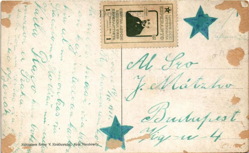 Leírás: 1911 Praha, Prague, Prága; Václavské námesti. V. Krátkoruky / street, shops, with Esperanto stamp (Rb)