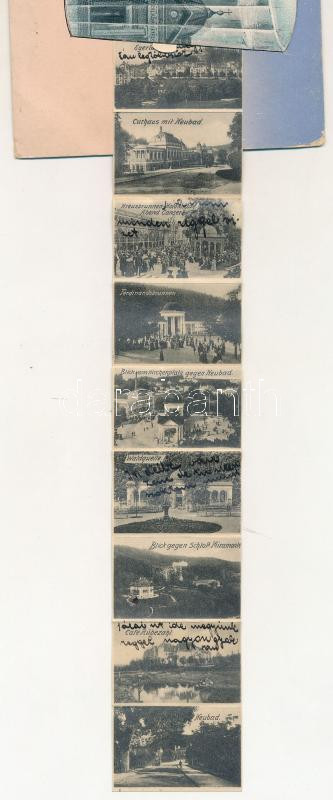 Leírás: Mariánské Lázne, Marienbad; Glass, leporello card with 10 mini images, E. A. Götz